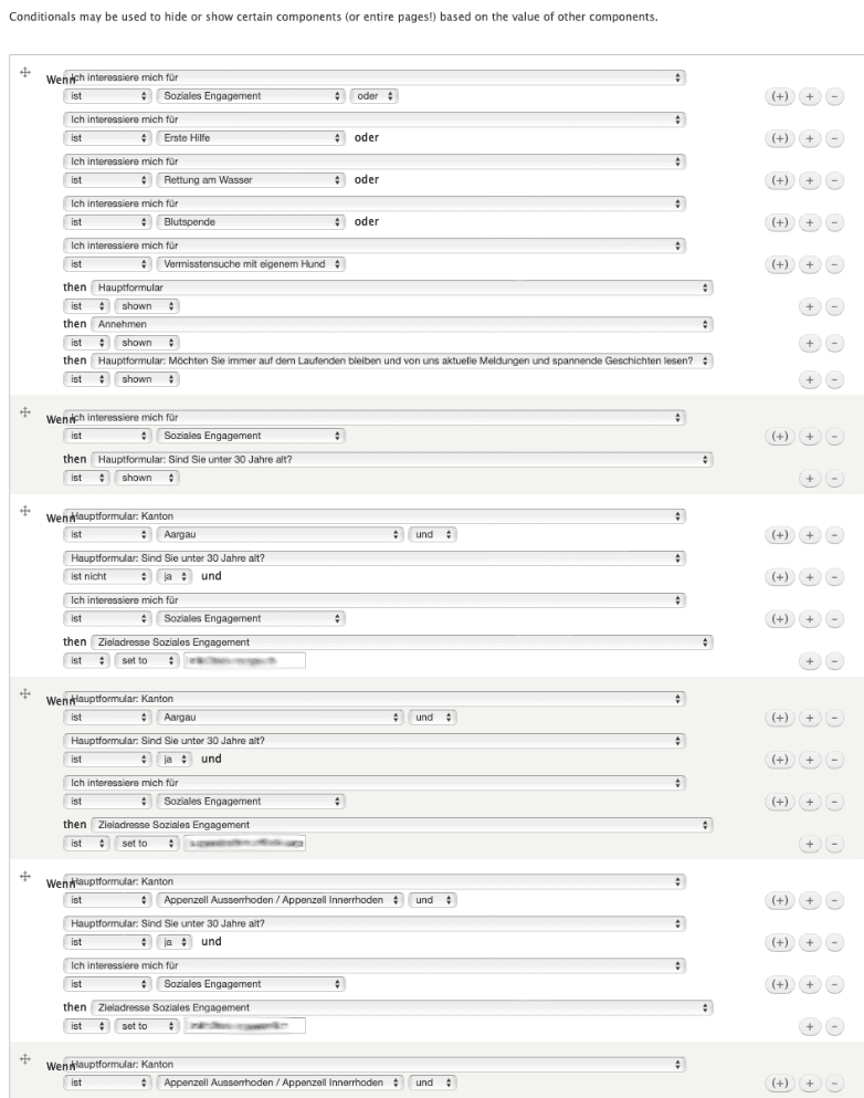 The Swiss Red Cross provides plenty of opportunities to volunteer, like helping the elderly, supporting refugees, providing first aid, or donating blood. And to get as many new volunteers on board as possible, they have set up a form on their website, with the following logic, where people can register to help out.