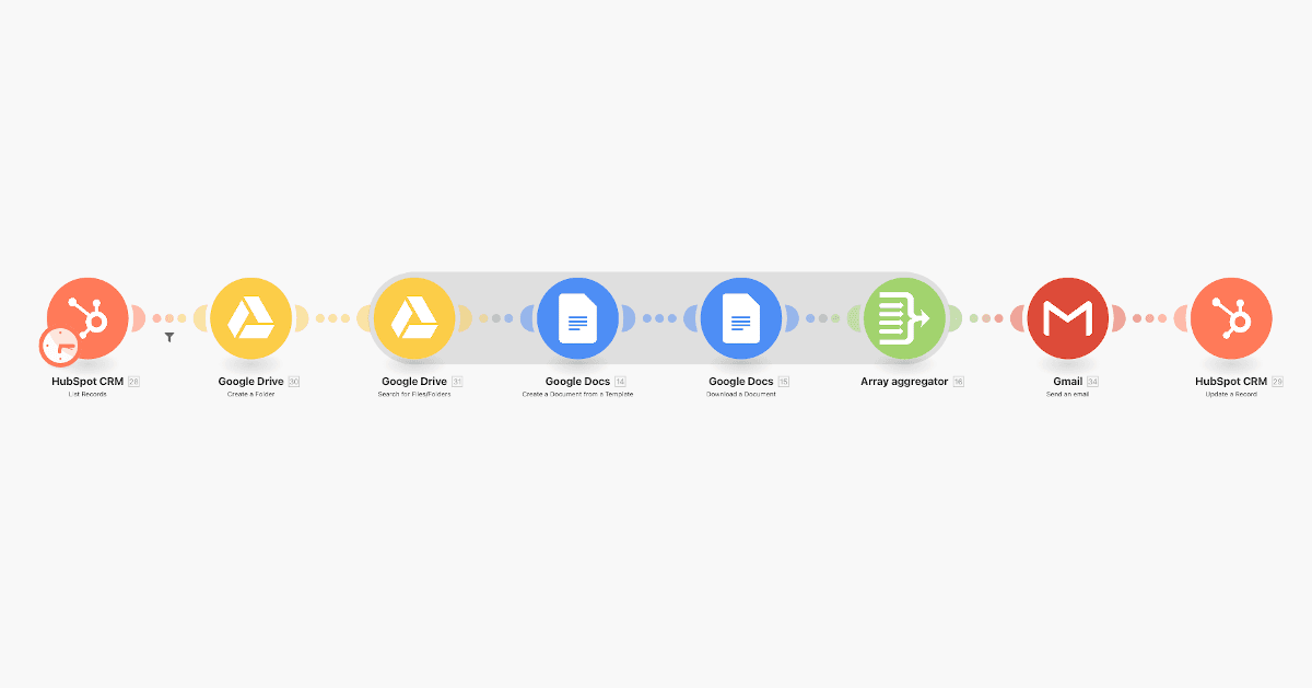 The good news is that you can automate many of these tasks. From invoice processing to contract drafting, Make can pull the information directly from your CRM and push it to your document creation software.