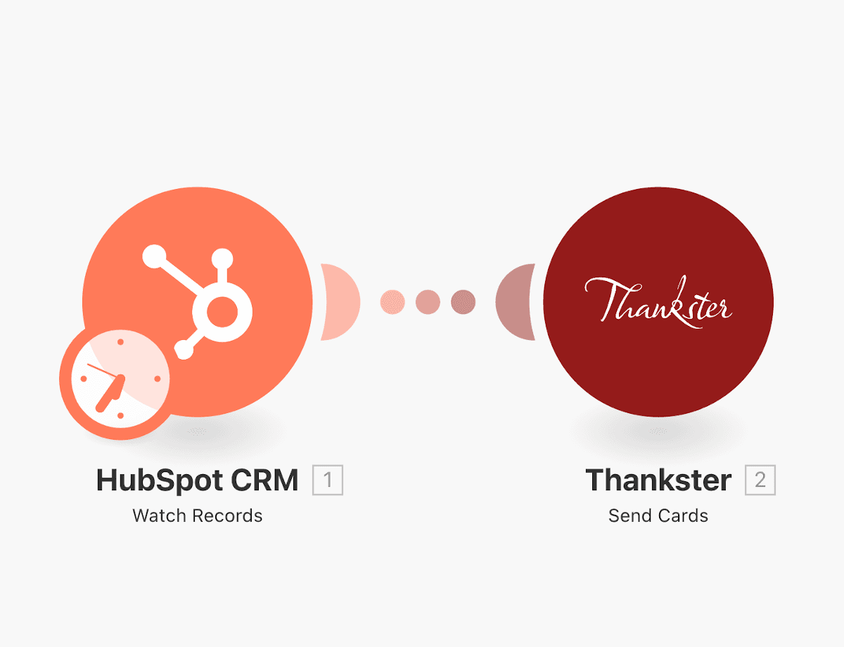 Services like Thankster allow you to create handwritten cards online and send it by snail mail. Coupled with Make, it’s a powerful way to create a personalized, automated outreach. Here are some ideas you can implement:
